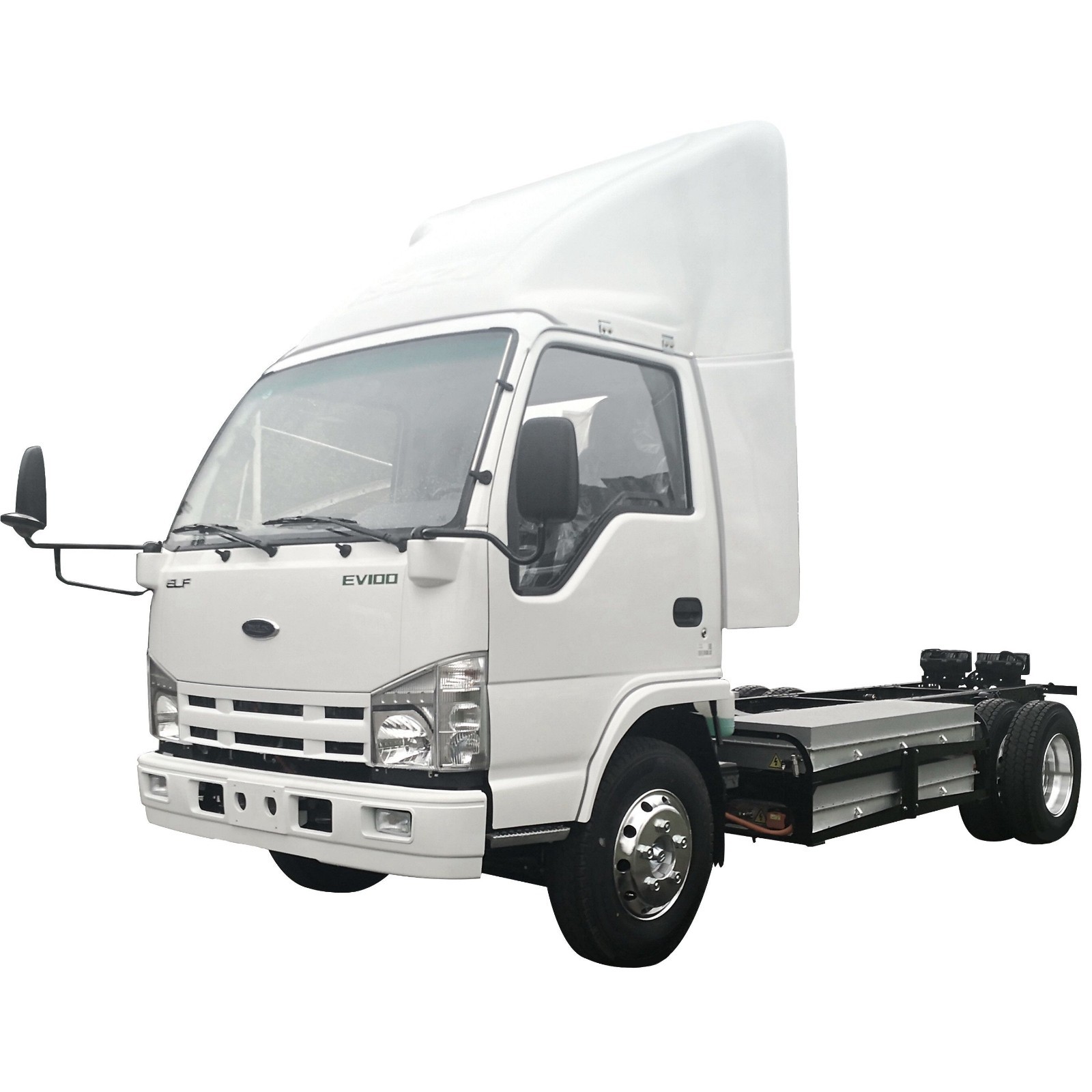EV100 is the typical model of light duty electric trucks, modified with the aluminum cargo van box and accommodating up to 18m3, has the power of 106kwh, allowing for a driving range up to 260 miles. This model has a payload capacity of 4230kg and the front/rear axle capacity of which is 1805/2690kg.